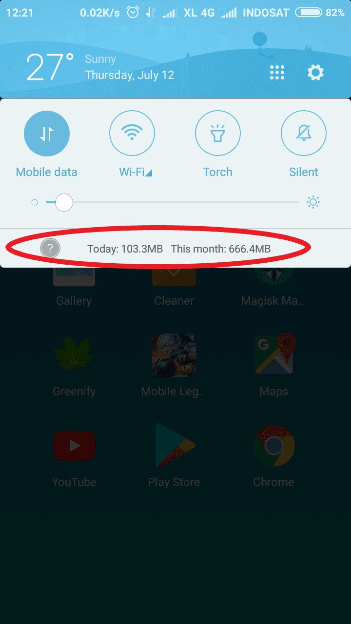 3. Pilih penggunaan data internet yang sedang digunakan seperti tanda panah berikut, selanjutnya ketuk tanda ceklis berwarna hijau di sebelah kiri aplikasi yang akan dibatasi penggunaan internetnya
